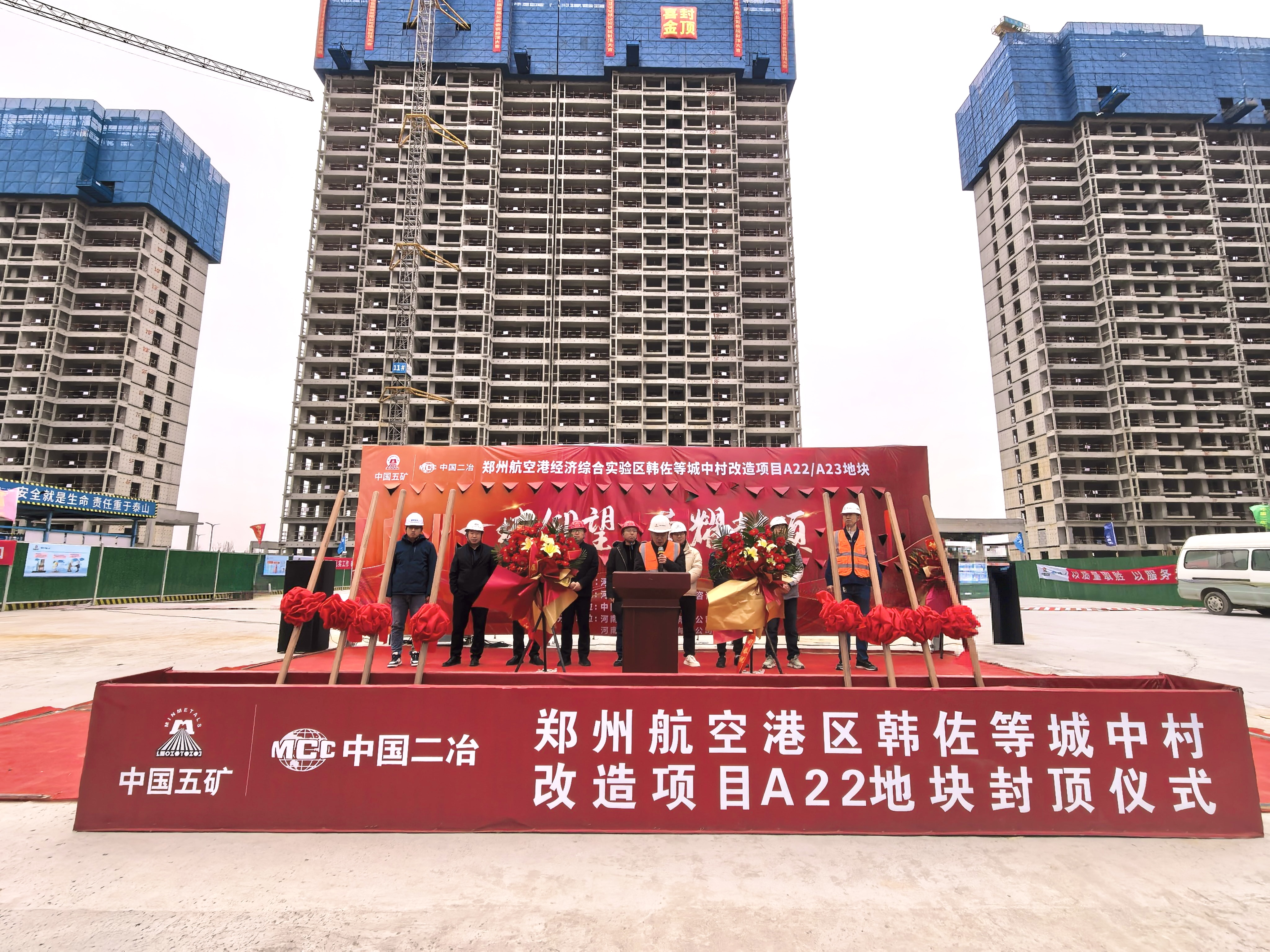 2月6日,冶金分公司郑州航空港项目2号楼、8号楼、10号楼三栋主体结构全部顺利封顶,标志着项目建设取得阶段性关键进展,为后续工程推进及如期交付奠定了坚实基础。