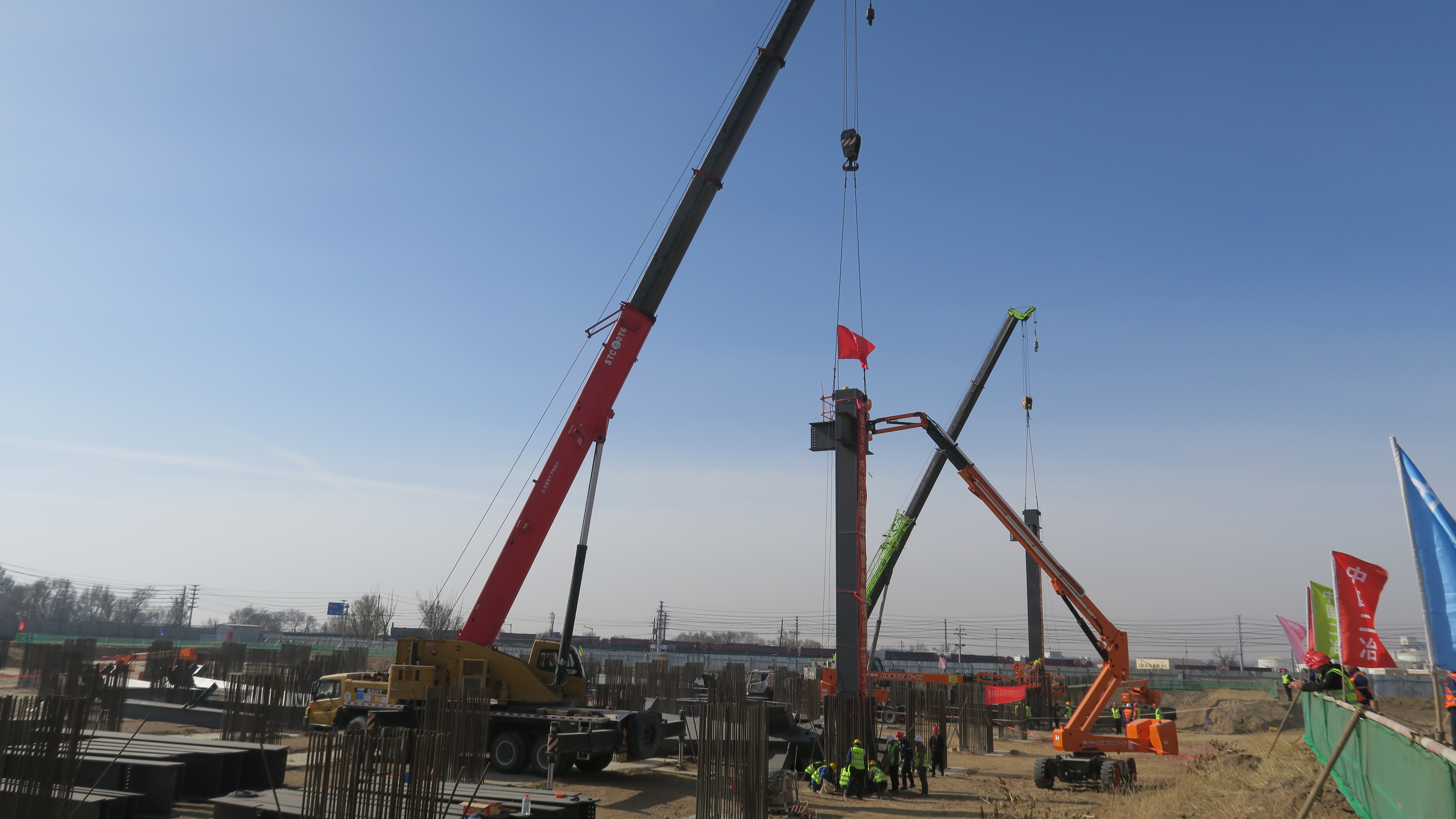 4月2日上午,东河冷链项目首根钢结构立柱精准就位,首吊圆满成功。