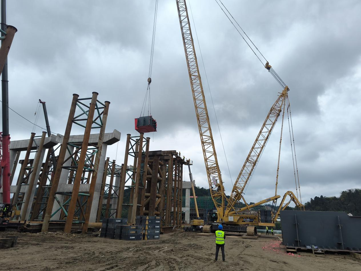 4月8日,四川分公司三台县绕城改线工程项目首片钢箱梁成功吊装。