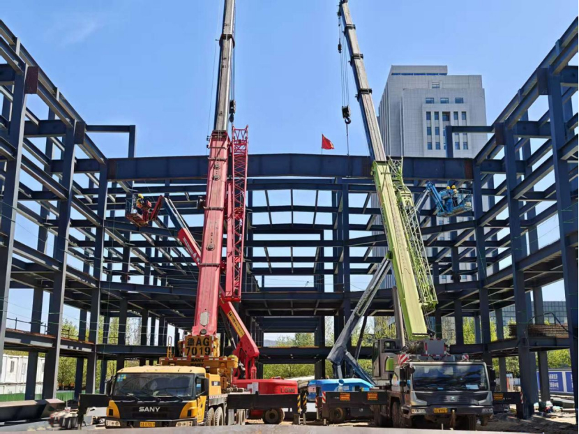 4月14日,山东分公司贝迪产业园项目3#展厅及研发楼24米大跨度屋面主钢梁精准落位,吊装作业圆满完成。项目主体结构圆满收官,工程建设正式进入二次结构、机电安装与装饰装修阶段。