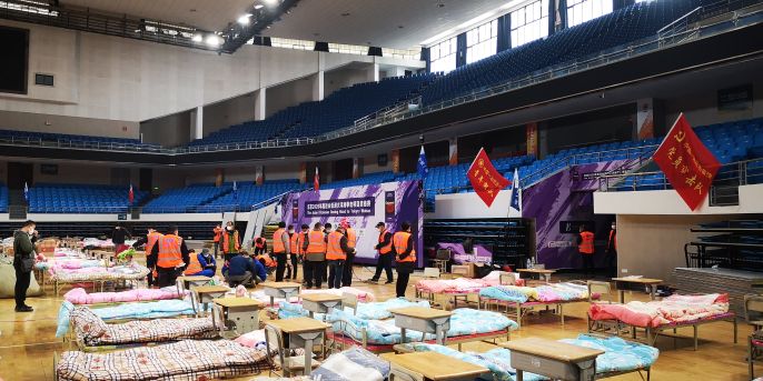 中国一冶突击队火速建设武汉洪山体育馆“方舱医院”