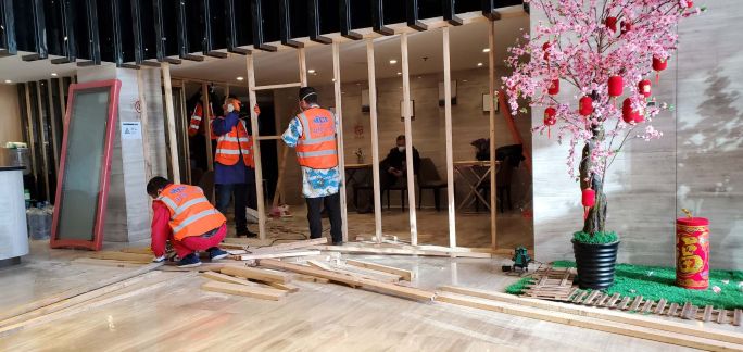 中国一冶突击队在健吾假日酒店“方舱医院”建设现场