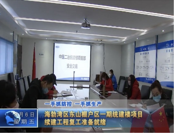 3月6日,乌海电视台《新闻联播》栏目深入中国二冶房地产公司承建的海勃湾区东山棚户区一期统建楼项目续建工程施工现场,对该项目部在疫情期间积极克服困难,加快推进复产复工做专题报道。