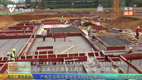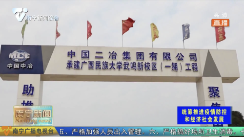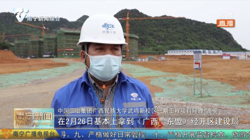 3月22日,南宁市新闻广播电视台以《统筹兼顾 双线作战 奏响重大项目复工复产》为题,对中国二冶集团广西分公司承建的广西民族大学武鸣新校区(一期)工程项目进行了重点报道。