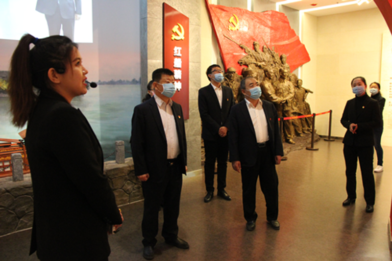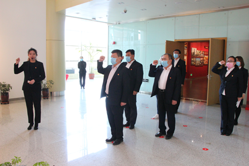 此次参观学习是为下一步公司建立党建活动室积累宝贵经验,同时也是一次党性提升的再学习再教育。大家在讲解员的引领下认真参观了学习厅、党史展厅等功能区和名书记工作室、人才驿站、红色众创空间、智慧党建馆等10个功能室。在数字展厅白峰仔细询问了展厅的主要功能,在民族服饰换装体验区及VR体验区饶有兴致的进行了体验。在一件件文献物品、一幅幅历史照片前,大家驻足观看,聆听讲解,尤其在旧票据展台,对当年物资匮乏限量凭票购买的年代感触颇深。走到入党宣誓区,在白峰书记的带领下,大家面对党旗重温了入党誓词,精神再一次受到洗礼。在3D沉浸式剧场,大家观看了包头作为工业城市的发展历程。