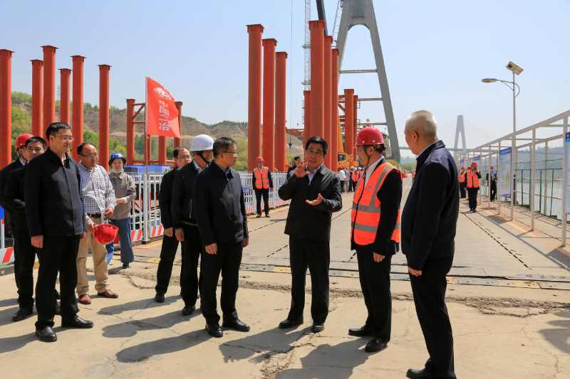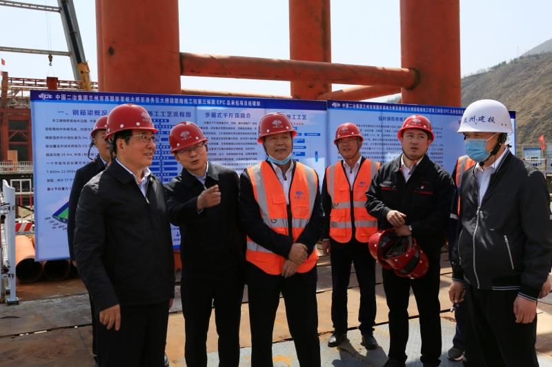 中国二冶副总经理、甘肃分公司总经理居帅,路桥分公司总经理郝海飞,甘肃分公司党总支书记、纪委书记、副总经理王力海及兰州柴家峡大桥项目部相关人员陪同调研。