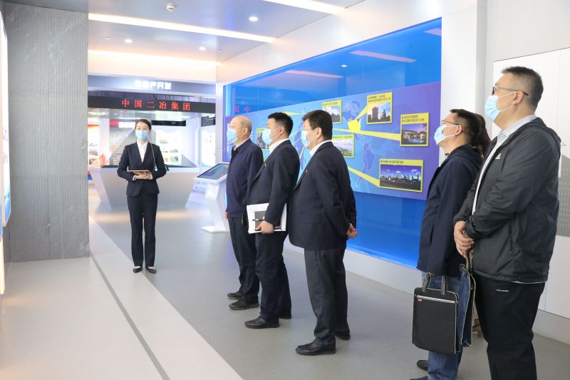 王宏用一行首先参观了中国二冶荣誉展厅,对二冶的发展有了深入了解。在随后召开的调研会上,白峰对王宏用一行到中国二冶调研工作表示热烈欢迎,对中国二冶发展历程、区域布局、资质升级、组织结构及近年来发展经营情况进行了简要介绍。同时阐述了今年年初以来,中国二冶一手抓疫情防控,一手抓复工复产,千万百计保生产稳就业,开展“效益提升年活动”和“大干二季度”劳动竞赛等活动,多措并举有序推动复工复产,广泛开展线上招聘活动,多渠道、多形式地吸纳人才,确保了疫情期间企业零裁员,保持了员工队伍稳定和企业健康平稳发展。