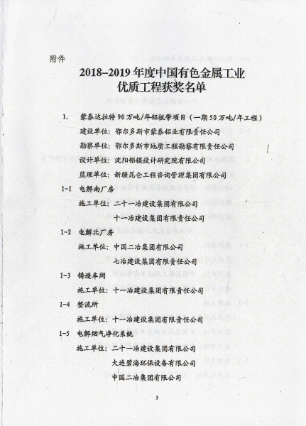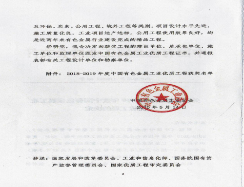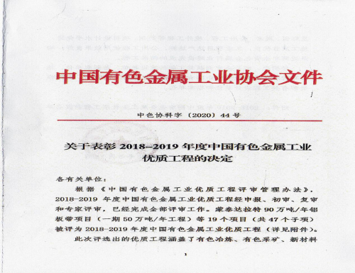 此次评选2018-2019年度中国有色金属工业优质工程是根据《中国有色金属工业优质工程评审管理办法》,经初审、复审和专家评审,评选出的优质工程涵盖了有色冶炼、有色采矿、新材料及环保、炭素、公用工程、境外工程等类别,项目设计水平先进施工质量优良,工业项目达产达标,公用工程使用效果良好,均是近两年来有色金属行业建设完成的精品工程。