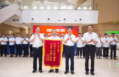 张传驰副市长将锦旗送到公司副总经理李海手中,并表达了对中国二冶集团的高度赞扬和衷心感谢。他讲到:“中国二冶集团真正做到了一手抓疫情防控,一手抓项目建设两不误,实属央企风范,二冶是一支能打硬仗、能打胜仗的队伍,我们感到感动与感激!”华北片区参加观摩的50余名二冶建设者共同见证了这一光荣时刻。