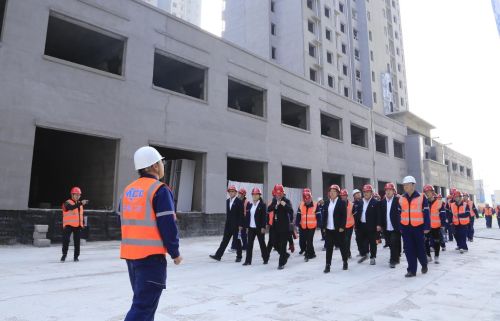 在下午的观摩活动中,与会人员在项目部技术人员的带领下深入现场,对全部封顶的27栋楼体施工区域、样板区域进行了参观学习,重点从工程的总体概况、新技术、重难点、特色亮点、质量管理、建设意义等多方面了解,深入学习了中国二冶在技术创新、质量把控、绿色施工、安全文明施工等方面的先进技术,见证了央企助力河南地区高质量发展的社会责任与品牌实力。观摩结束后,与会人员进行了座谈,认真总结观摩交流成果,结合项目特点进行了更加富有针对性的深入交流。