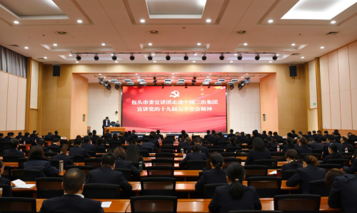 公司领导班子成员,两级机关、二级公司党员领导干部在主会场参会,外地区域公司、项目部设立分会场,通过视频形式参加会议,共计500余人聆听宣讲。