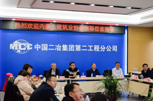 12月6日下午,内蒙古自治区建筑业协会组织副会长单位代表一行到中国二冶第二工程分公司参观交流。中国二冶总工程师、副总经理武轶彬与对方进行友好会谈,双方就推动内蒙古自治区建筑企业高速发展进行沟通交流、广泛交换意见。