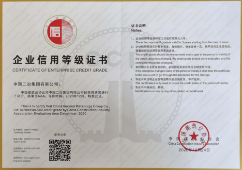 1月8日,从中国建筑业协会传来喜讯,中国二冶被评为“2020年度建筑业AAA级信用企业”,这是公司首次获此殊荣,也是对公司信用建设成绩斐然的高度肯定。