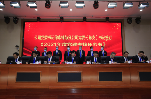 徐永锋与各分公司党委(总支)书记签订《2021年度党建考核任务书》。