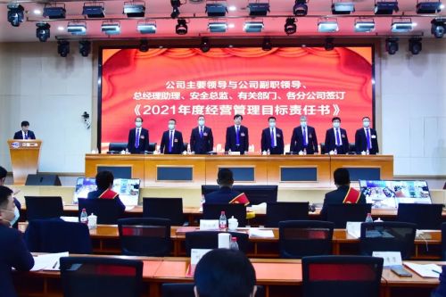 徐永锋、高文华与公司副职领导、总经理助理、安全总监、总部有关部门、各分公司签订《2021年度经营管理目标责任书》。