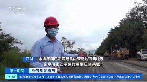 2月12日,大年初一早晨,央视财经频道(CCTV-2)《第一时间》栏目以《坚守里的春节》为题播出中国十九冶巴新高地项目建设纪实。报道指出,为了加快项目施工进度,中国十九冶在确保疫情防控和中外员工安全健康的前提下,春节期间不停工、不停产, 63名中国员工和1000余名当地员工奋战在一线岗位上,在巴布亚新几内亚高地高速公路项目喜度中国年。