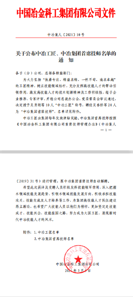 3月9日,从中冶集团传来喜讯,中国二冶钢构分公司青年员工高磊荣获“中冶集团首席技师”荣誉称号。