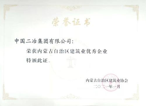 3月25日,内蒙古自治区建筑业协会文件(内建协【2021】)17号)公布了全区106家建筑业优秀企业、80名建筑业优秀企业家、337名优秀项目经理名单。中国二冶被授予“内蒙古自治区建筑业优秀企业”荣誉称号;公司总经理、党委副书记高文华被授予“内蒙古自治区建筑业优秀企业家”;陕西分公司副总经理傅雅江、房地产开发公司项目经理潘涛、付云阶,钢结构分公司项目经理田忠刚荣获“内蒙古自治区优秀建造师(优秀项目经理)”荣誉称号。
