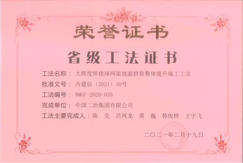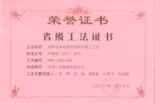 近日,中国二冶八项工法被内蒙古建筑业协会评为省部级工法,公司工法成果数量再创新高。