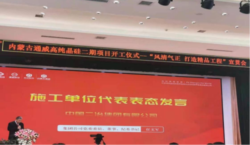 5月13日,中国二冶内蒙古通威多晶硅二期项目开工,冶金分公司与内蒙古通威多晶精硅有限公司等单位,共同举办了“风清气正 打造精品工程”项目开工仪式。公司纪委书记任文军出席仪式并作表态发言,冶金分公司总经理杨宁及项目部全体人员近40 余人参加开工仪式。