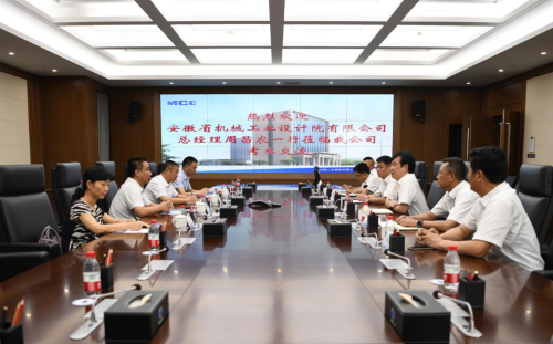 7月27日,公司党委书记、董事长徐永锋会见安徽省机械工业设计院有限公司总经理周昌农一行。双方就工程建设、钢结构制造等领域开展全方位深度合作进行座谈交流。