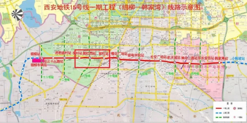 中国二冶承建的西安地铁15号线一期承建范围为:祝村站(含)-邮电学院站(含)、长安广场站、区间维保工程,是主城区南部横切线,主要承担鄂邑区、高新区、长安区、航天基地等区域居民的出行及进入秦岭生态风光带的旅游客流,属于骨干线路。