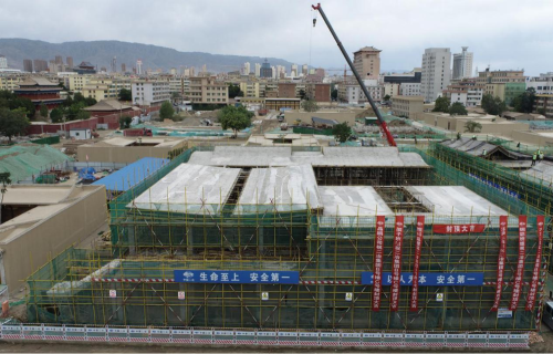 武威项目部承建的工程主要包括文庙、古钟楼、罗什寺历史文化街区保护建设。该项目建筑密度大,施工难度大,时间紧张,任务繁重,为了使工程快速、顺利完成,自主体结构开始施工以来,在公司各级领导的支持下,武威项目部各部门各单位紧密协作配合,全体员工将继续保持二冶速度,在保证质量的前提下,安全施工,力求创建精品工程。其中,总用地面积9166.56的平灵渊池1—11号楼已顺利封顶。