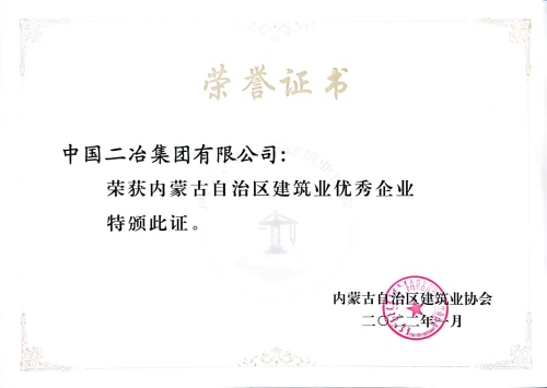 4月11日,内蒙古自治区建筑业协会文件(内建协【2022】23号)公布了全区132家建筑业优秀企业、88名建筑业优秀企业家、417名优秀项目经理名单。中国二冶被授予“内蒙古自治区建筑业优秀企业”荣誉称号;公司副总经理刘宝世被授予“内蒙古自治区建筑业优秀企业家”;湖北分公司总经理甄永明、钢结构分公司副总经理田广林、甘肃分公司项目经理樊思坤荣获“内蒙古自治区优秀建造师(优秀项目经理)”荣誉称号。