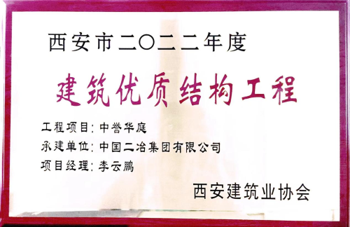 “建筑优质结构工程”奖是西安市建筑行业工程质量管理方面的权威奖项。该奖项的获得,是西安市建筑业协会对中国二冶建筑施工生产实力和质量管控专业技术能力的充分肯定,更是对中国二冶在西安市城市建设过程中的付出和为当地经济发展所作贡献的认可。