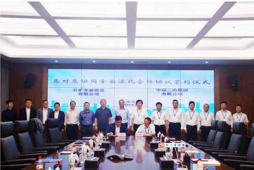 9月22日,中国二冶与五矿发展股份有限公司举行战略合作协议签订仪式,中国二冶党委书记、董事长徐永锋,副总经理刘宝世,五矿发展党委副书记、总经理魏涛见证双方签约。中国二冶总会计师范大鹏,五矿发展副总经理张旭,代表双方签订战略合作协议。