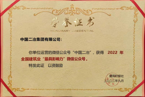 9月24日,由建筑时报社主办,中国建筑业协会指导的2022年建筑业微信公众号运维经验交流研讨会暨全国建筑业优秀微信公众号颁奖典礼在湖北武汉举行。中国二冶微信公众号“中国二冶”被授予2022年“全国建筑业最具影响力微信公众号”荣誉称号。