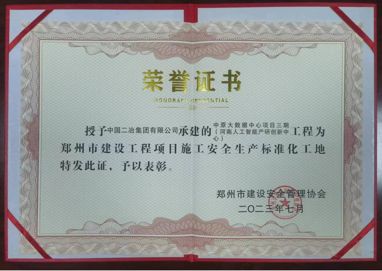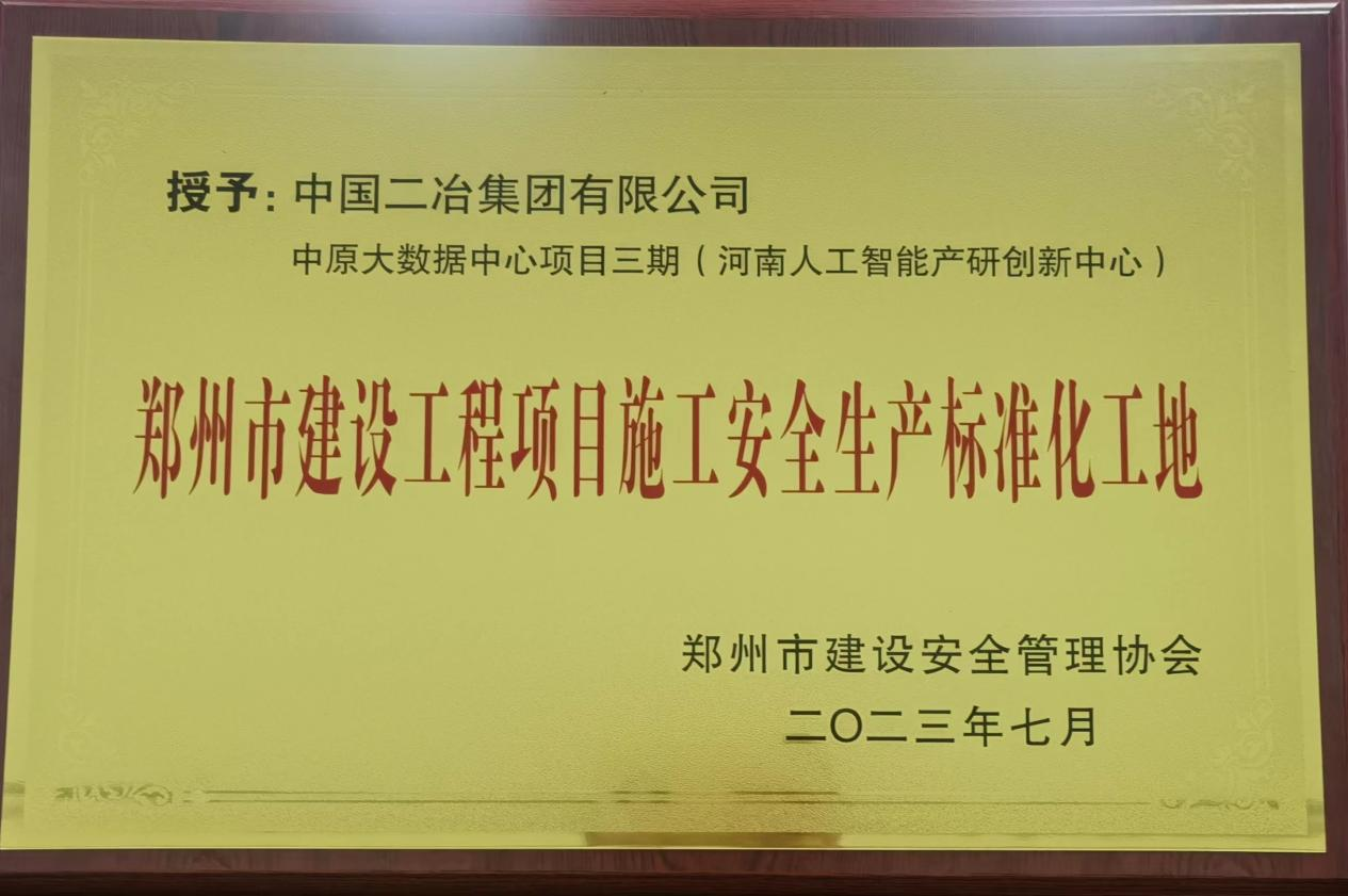 7月22日,由中国二冶中原分公司承建的中原大数据中心项目三期(河南人工智能产研创新中心)建筑工程施工总承包项目经理部获评郑州市2023年建设工程项目施工安全生产标准化工地称号。