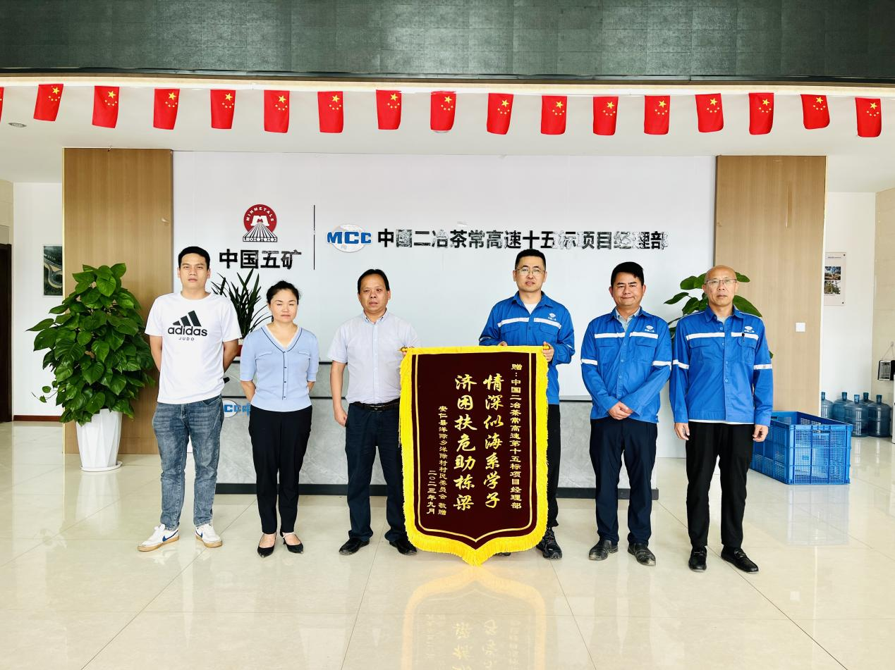 9月20日,中国二冶茶常高速第15合同段项目部收到安仁县洋际村送来的“济困扶危助栋梁,情深似海系学子”锦旗,对项目部助力乡村教育事业表示衷心感谢。