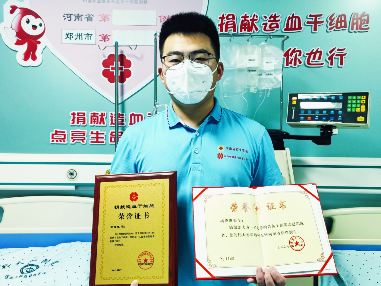 曾是军人的胡德魁在退伍后一直坚持无偿献血。从2019年开始,胡德魁已经累计献血18次,共计6800ml。2021年1月,在一次献血过程中,胡德魁第一次接触到造血干细胞捐献,在向工作人员充分了解后,他主动留下血样,志愿加入中华骨髓库。去年8月,正在工作的胡德魁接到了配型成功的电话,在确认捐献日期后,胡德魁坚持运动,保持清淡饮食和良好的作息,为捐献做好准备,最终于去年12月捐献成功。