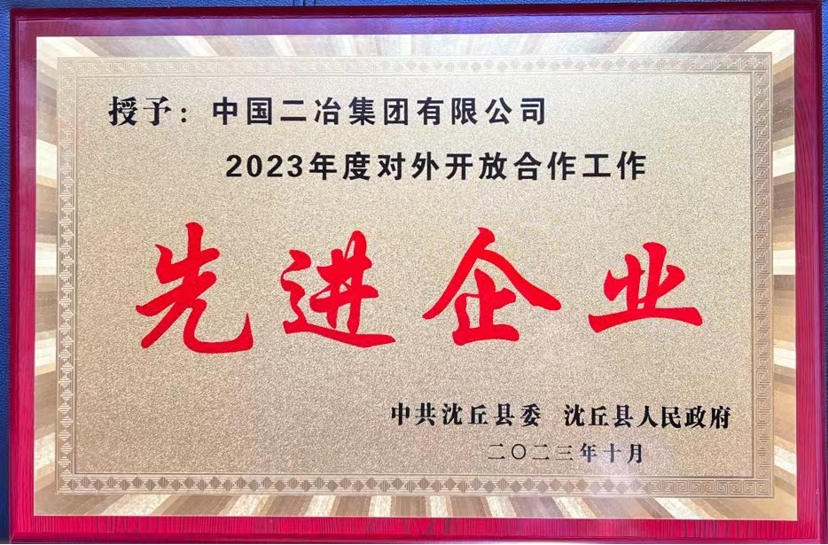 10月21日,河南省沈丘县召开对外开放合作大会,对11家参与沈丘县基础设施建设做出突出贡献的企业进行表彰,中国二冶荣获沈丘县先进企业称号。