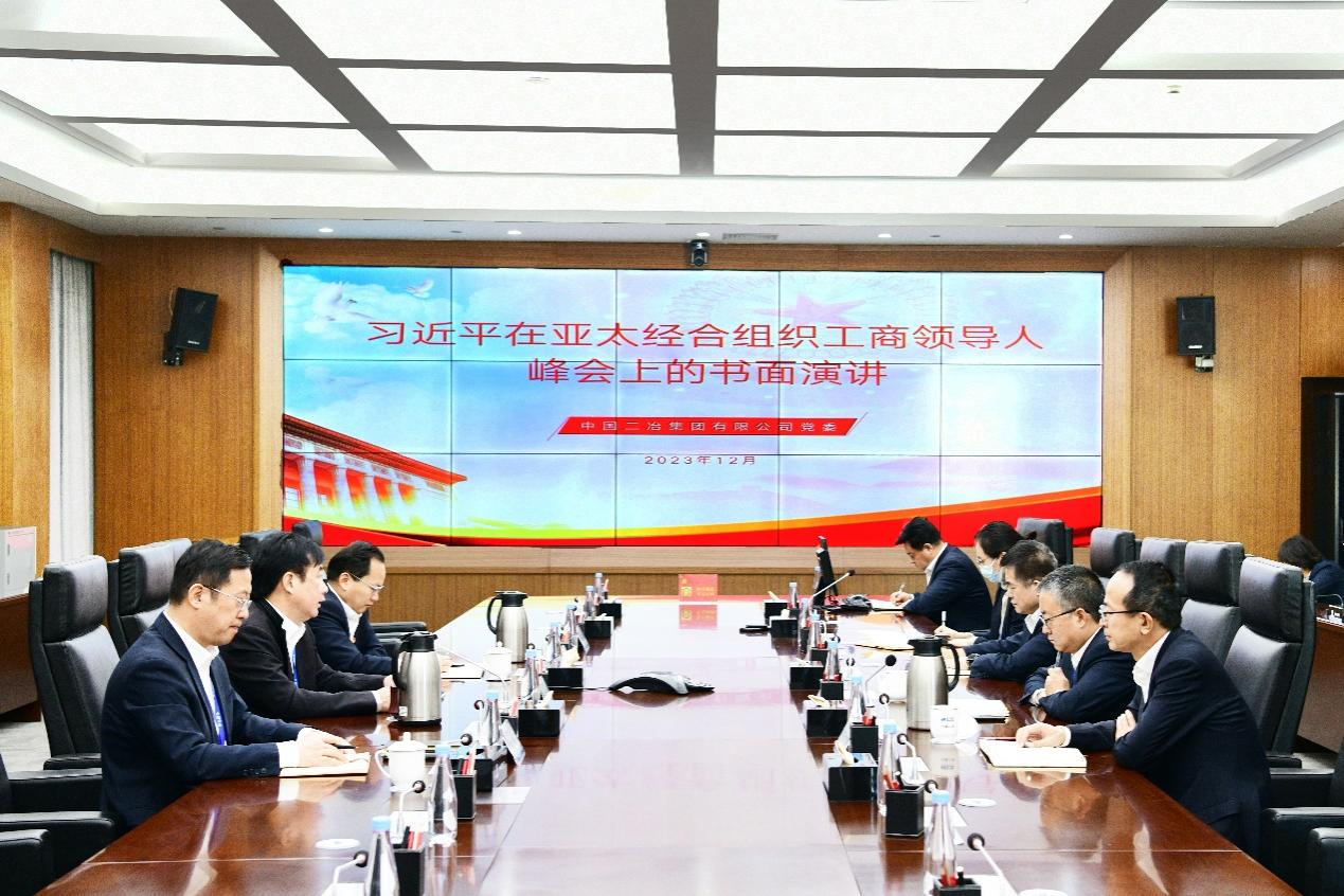 12月8日,中国二冶召开党委会,学习习近平在二十届中共中央政治局第十次集体学习时发表的重要讲话精神、习近平在亚太经合组织第三十次领导人非正式会议上的讲话、习近平在亚太经合组织工商领导人峰会上的书面演讲、习近平在金砖国家领导人巴以问题特别视频峰会上的讲话。公司党委书记、董事长徐永锋领学并提出要求。
