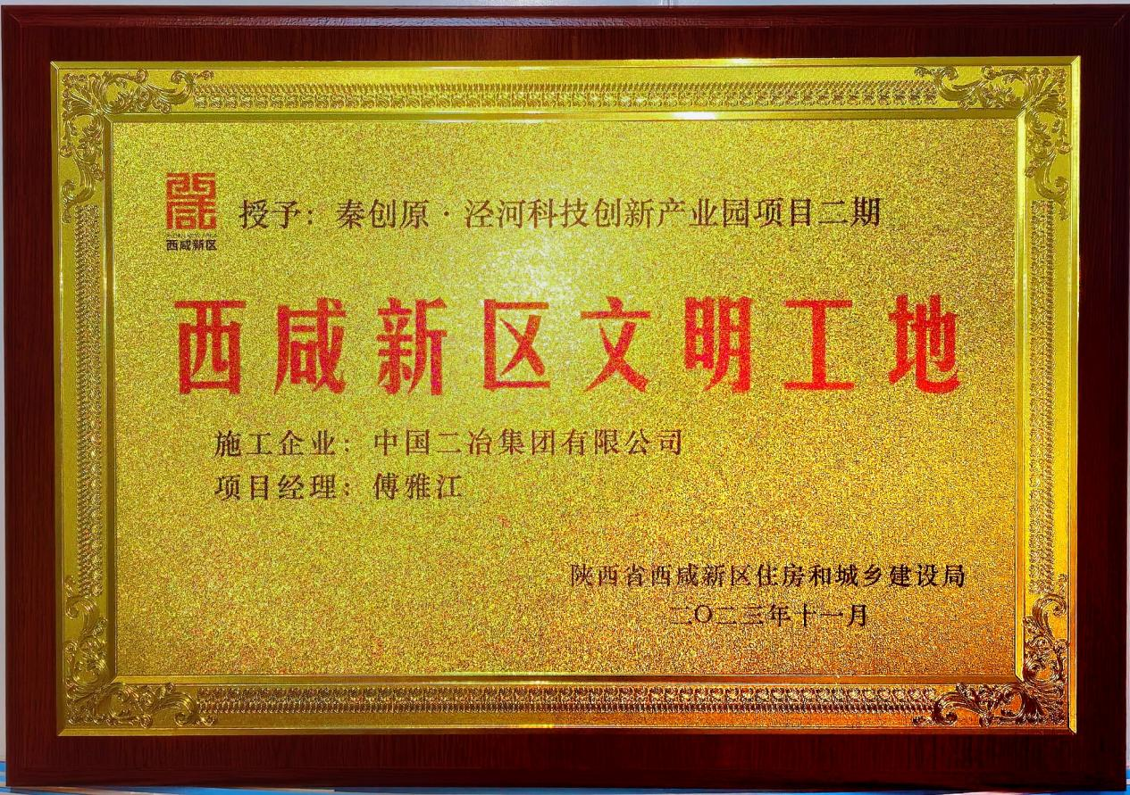12月13日,中国二冶陕西分公司承建的秦创原·泾河科技创新产业园项目二期荣获“西咸新区文明工地”荣誉称号。