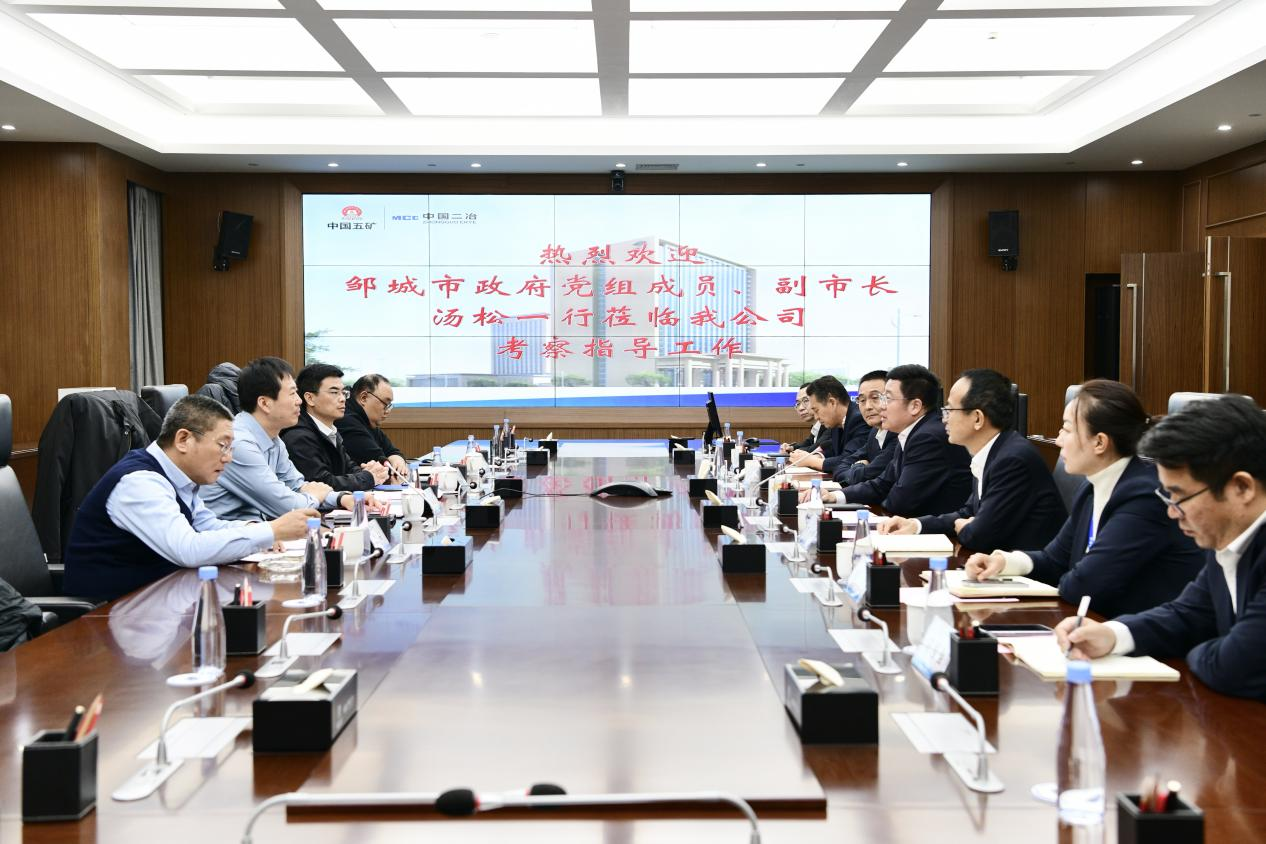 耿永旺对汤松一行的到访表示欢迎,并简要介绍了中国二冶的历史沿革和发展成绩。他表示,中国二冶作为内蒙古自治区建筑业龙头企业,依托中国五矿金融业务全牌照优势,在城市更新、高端房建、大型场馆等领域均取得了优异成绩,积累了丰富的投资开发经验。中国二冶高度重视山东区域市场,尤其是深耕邹城市场数年来,双方在前期合作中相向而行、互信互助,以有解思维破解难题、推动发展,共同打造了一批高质量标志性建筑工程,取得了良好口碑。希望双方在既有的合作基础上,开启全方位多层次宽领域的战略对接,中国二冶将持续发挥全产业链优势,立足邹城发展实际,创新合作路径,为邹城经济社会高质量发展贡献央企力量。