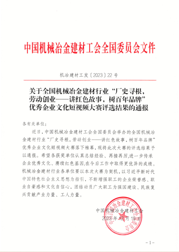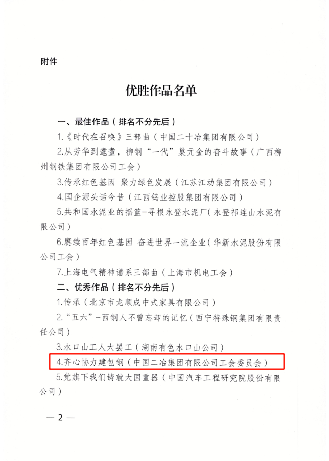 12月19日,由中国机械冶金建材工会全国委员会举办的全国机械冶金建材行业“厂史寻根,劳动创业——讲红色故事,树百年品牌”优秀企业文化短视频大赛落下帷幕。中国二冶工会报送的作品《齐心协办建包钢》荣获优秀作品。