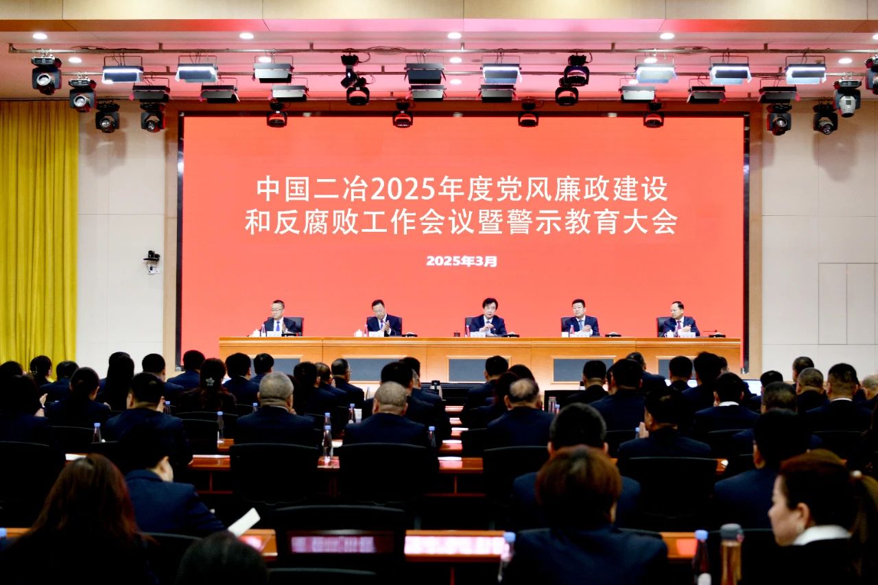 3月7日,中国二冶召开2025年度党风廉政建设和反腐败工作会议暨警示教育大会,全面贯彻党的二十大和二十届三中全会精神,深入贯彻落实习近平总书记重要讲话精神、二十届中央纪委四次全会、国务院国资委和中国五矿、中国中冶党风廉政建设和反腐败工作会议部署,开展警示教育,总结公司2024年党风廉政建设和反腐败工作,部署2025年任务。公司党委书记、董事长徐永锋出席会议并讲话,纪委书记张蔚君通报警示教育案例并作工作报告,党委副书记李海主持会议。