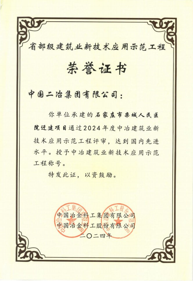 近日,由中国二冶承建的G59呼北高速湖南省新化至新宁段项目、石家庄市栾城区人民医院迁建项目、西安地铁15号线一期工程3标段一工区工程,被评为“中冶建筑业新技术应用示范工程”,其新技术应用与技术创新水平被认定为国内领先水平。