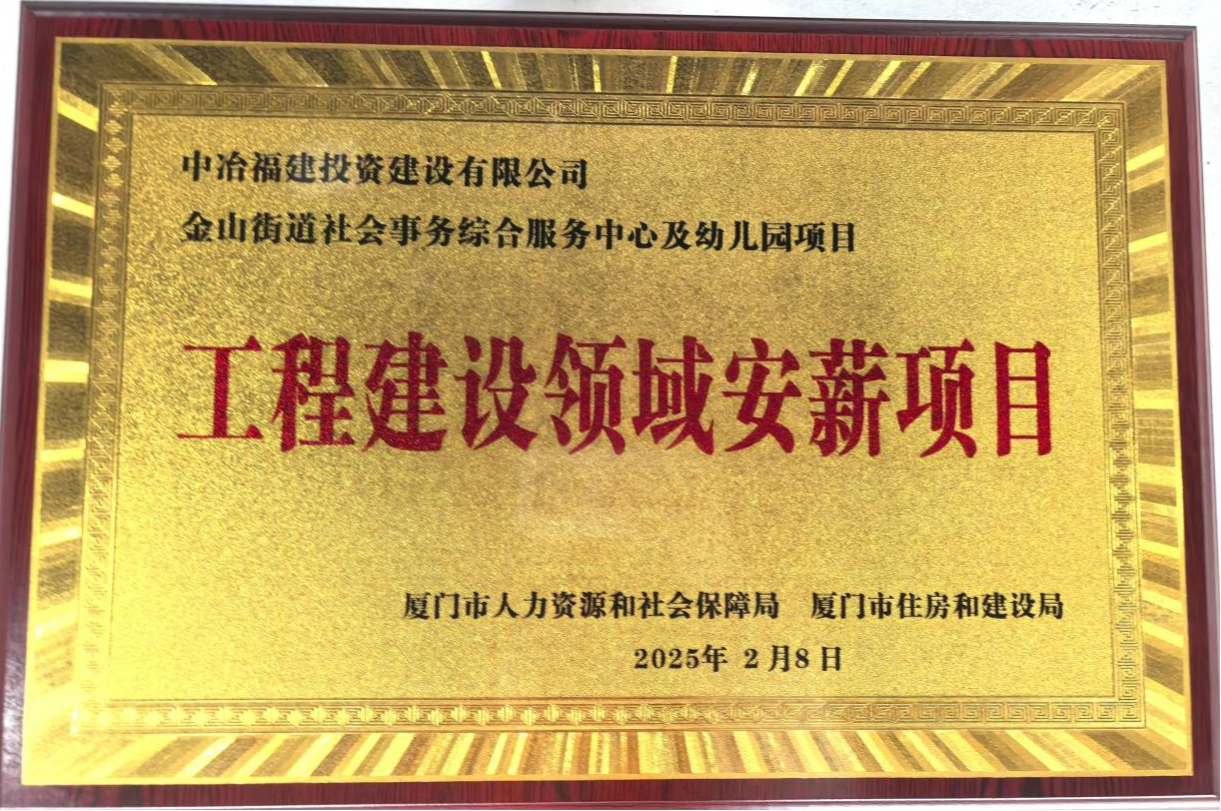 此次金山街道项目获评厦门市2024年度“安薪项目”,对于中冶福建公司来说,既是一份荣誉,更是一份责任。中冶福建公司将继续秉承“诚实守信、客户至上”的服务理念,不断提升项目管理水平和劳务用工管理水平,用实干担当践行央企使命,匠心铸造更多精品工程,为构建和谐社会、推动经济社会高质量发展作出更大贡献。