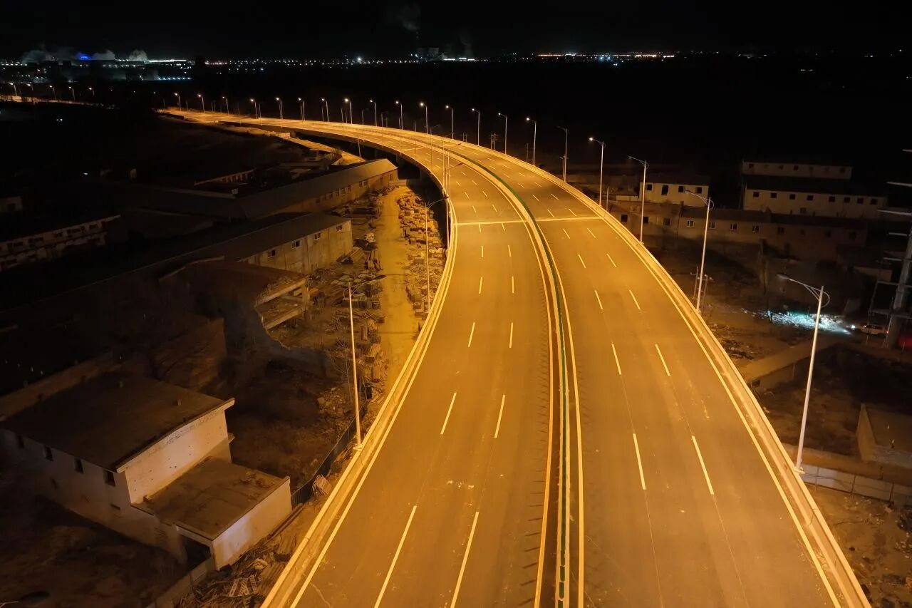 该项目是呼和浩特市交通网络的关键节点工程,北接金盛快速路斜拉桥,南接现状杭盖路,全长1.91公里,是连接呼和浩特主城区与和林格尔新区的关键交通纽带。项目建设期间,面对工期紧、体量大、场地受限、土地征拆复杂等挑战,中国二冶内蒙古分公司迅速组建专项攻坚团队,以“挂图作战、倒排工期”压实责任,从安全管理、质量把控、环保措施到技术创新多维度发力,有效破解施工难题,最终于2023年9月底高效竣工通车。