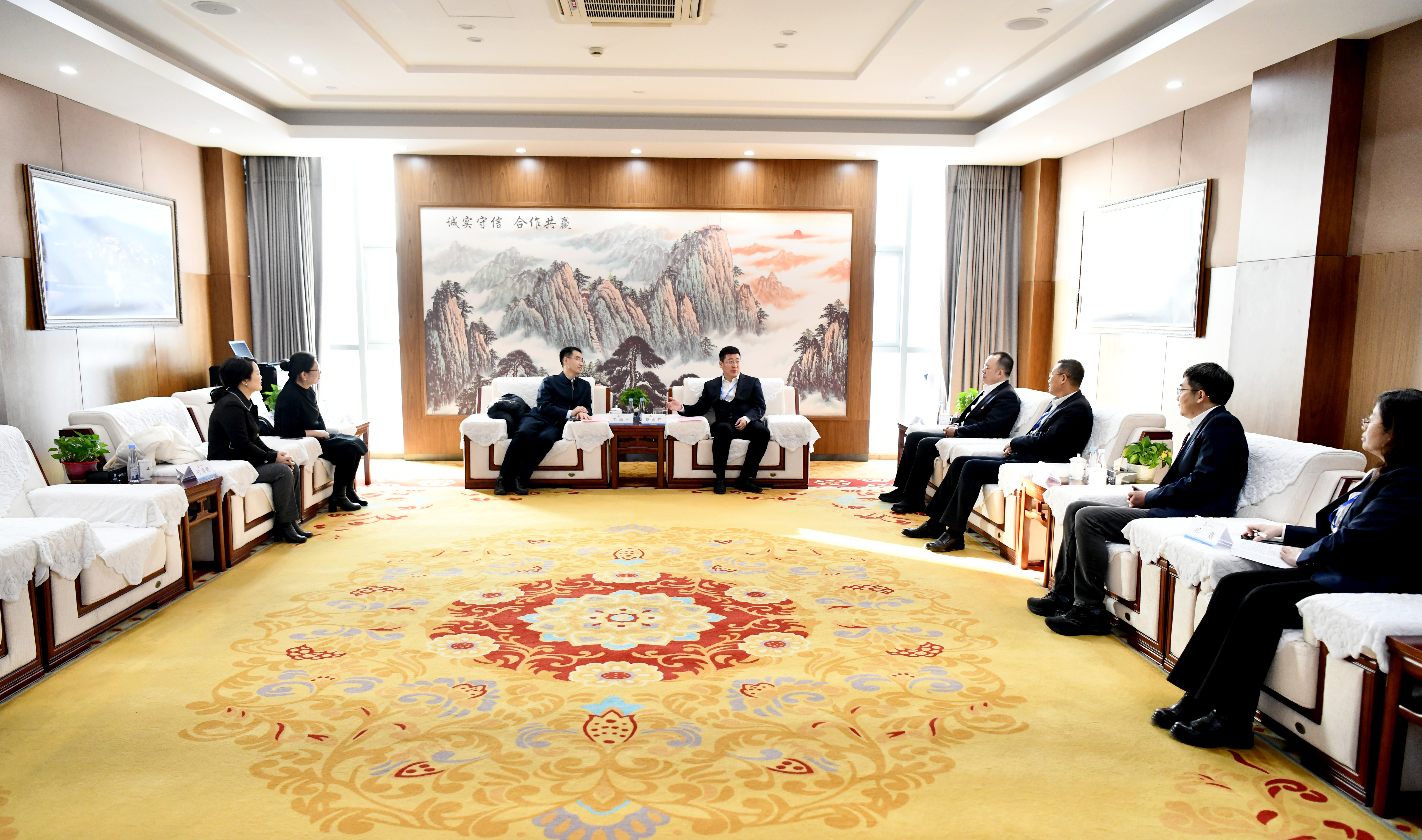 耿永旺对刘新平一行的到访表示欢迎。他指出,内蒙古银行作为自治区直属国有金融企业,始终坚持服务实体经济,在金融创新领域主动作为、深耕不辍,凭借“决策链短、服务迅速、机制灵活”的本土优势,在区域发展大局中彰显金融担当。内蒙古银行与中国二冶同处一方热土、共怀发展愿景,具备得天独厚的合作基础与广阔前景。希望双方以“资源互补、合规高效、互利共赢”为核心原则,聚焦供应链金融、重点项目合作、风险协同处置等关键领域深化合作内涵、拓宽合作边界,积极构建“政、金、银、企”四方联动协同机制,携手破除信息壁垒,共筑风险防控,持续扩大“朋友圈”,为推动地方经济高质量发展贡献更大力量。
