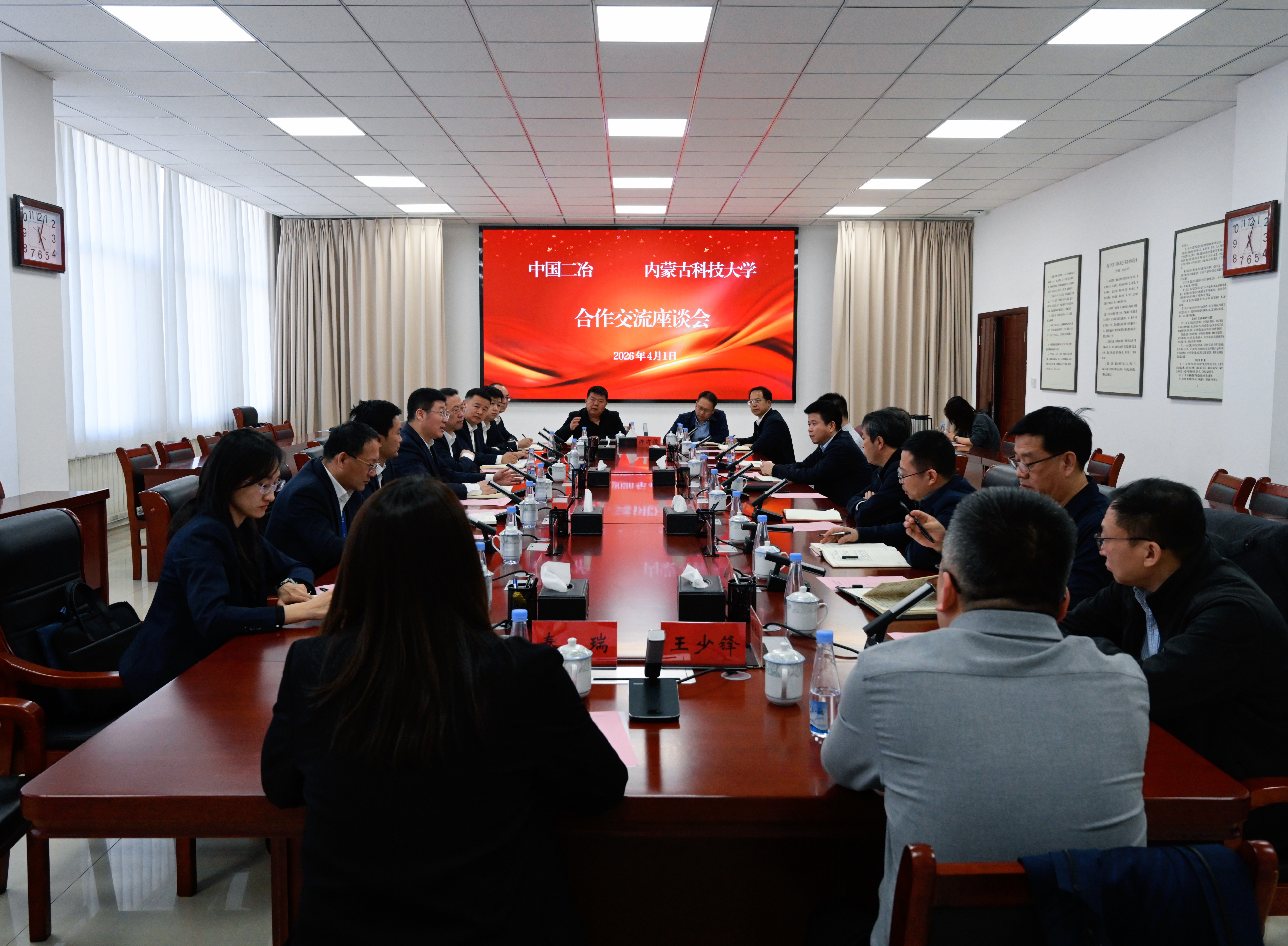 内蒙古科技大学校长助理刘承,相关学院院长、处室处长刘小勇,曹钊,张永强,高峻峰,刘文,王少锋,许有俊,王文明,秦瑞;中国二冶总部部门及二级公司负责人高盟、赵力欣、王志义、李晓明、韩慧超、尹力、李国强等参加会谈。