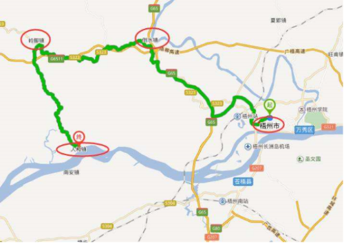 该项目路线起点位于贺州市昭平县木格乡与梧州市苍梧县京南镇交界处,接S201潮江至木格公路,终点位于人和片区的人和港附近,接在建的S304梧州至藤州公路。路线全长51.492公里,实际建设里程48.589公里,公路等级为二级公路。总工期1100日历天。