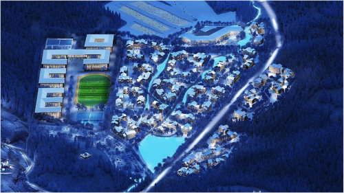 该工程位于保定市涞源县,七山滑雪度假区建设规划区总占地面积约12018.3亩,开发的滑雪面积为70万平方米。属于中大型滑雪度假区。其中冠军先锋小镇占地面积450亩,建筑面积36万平方米。总工期885天。