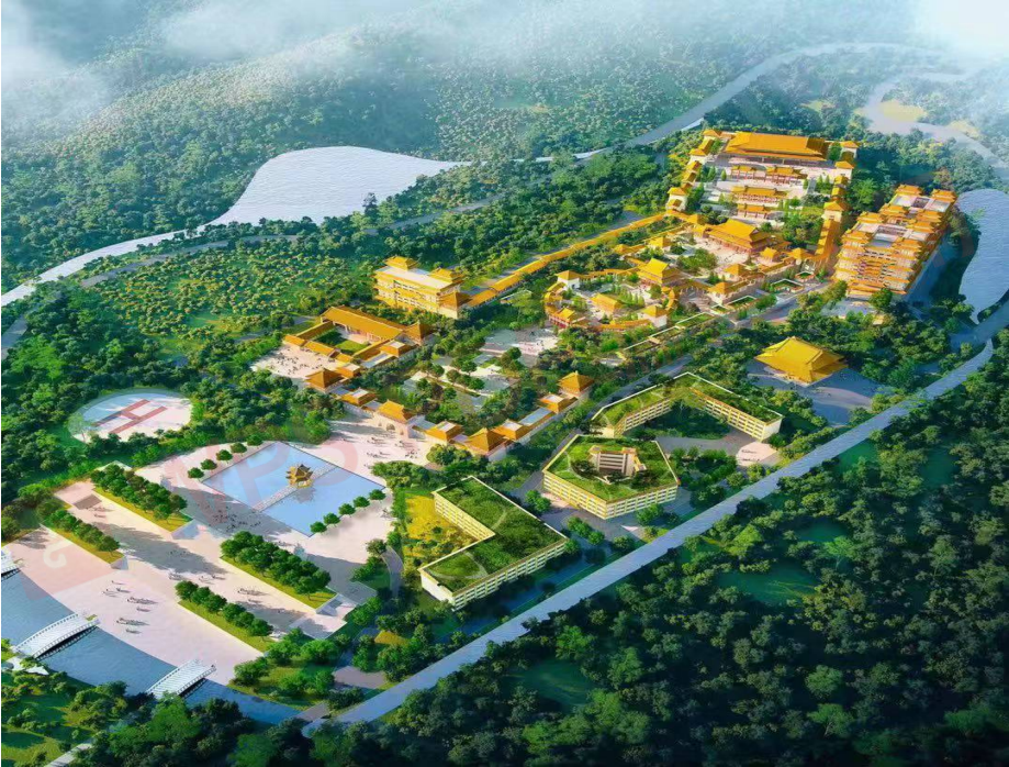 该项目位于广东省肇庆市怀集县,项目规划占地面积1379.3亩,建筑面积约255000平方米,建设内容包括大雄宝殿、六祖殿、天王殿、博览馆、讲经堂、僧舍信士居、上客房及万福园、塔林、禅文武院、六祖胜迹园、庙会街、接待宾馆、禅房别院、礼佛台、碑林禅林、静修园、绿道、停车坪、公益配套设施及已完工程的修缮等。