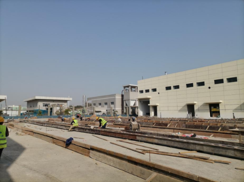 项目目前总体形象进度为装饰后期、总坪绿化施工阶段。装饰装修总体进度完成70%;附属工程中围墙剩余工程量20%;截洪沟剩余15%(办公区拆除中);园区道路南侧、东侧水稳、雨污管道施工完毕。场外运营道路基础垫层施工完成,涵管铺设完成90%。截止目前,项目累计施工人数已达124人次,大型机械设备8台,各施工作业面全面展开,已形成大干局面。