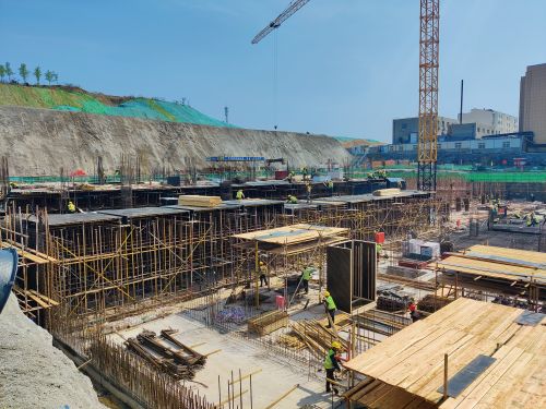 转眼即入盛夏,随着气温的升高,项目也进入施工大干时节,在全体人员的共同努力下,截止目前,住院楼西侧一层顶板钢筋正在绑扎,东侧一层架体正在搭设;医技楼西侧底板完成,中间段地下室顶板钢筋绑扎,东侧底板钢筋绑扎;门诊楼底板完成2块,搭设地下室顶板架体;其余4块绑扎底板钢筋。秉承“工匠精神”,结合项目实际,项目部以干事创业敢担当的斗志和钉钉子精神,正铆足干劲迎接挑战,为栖霞当地百姓在家门口提供优质高效的高效医疗服务而奋斗。